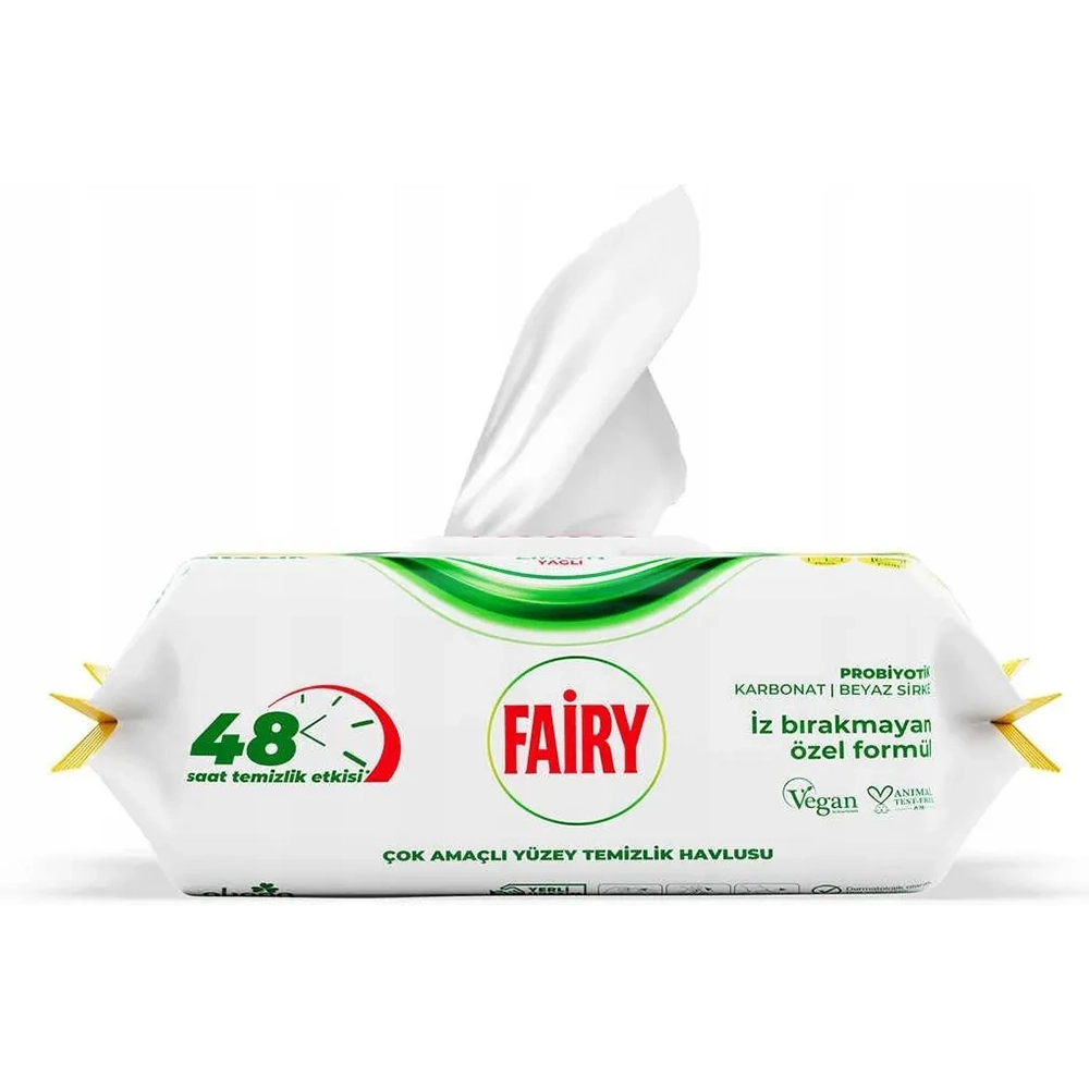 Fairy Nawilżane Chusteczki Czyszczące Uniwersalne Lemon to gotowe do użycia chusteczki, które skutecznie usuwają tłuszcz, kurz i codzienne zabrudzenia, pozostawiając świeży, cytrynowy zapach bez konieczności użycia wody.