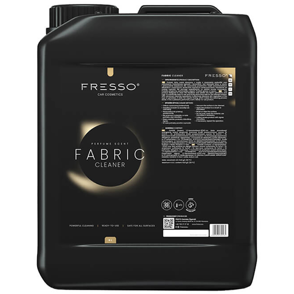 Fresso Fabric Cleaner to skuteczny preparat przeznaczony do czyszczenia podsufitki, tapicerki materiałowej oraz dywaników samochodowych. Gotowa do użycia formuła rozpuszcza zabrudzenia, usuwa tłuste plamy i odświeża materiał, nie wymagając płukania. Dodatkowym atutem jest elegancki, perfumeryjny zapach.