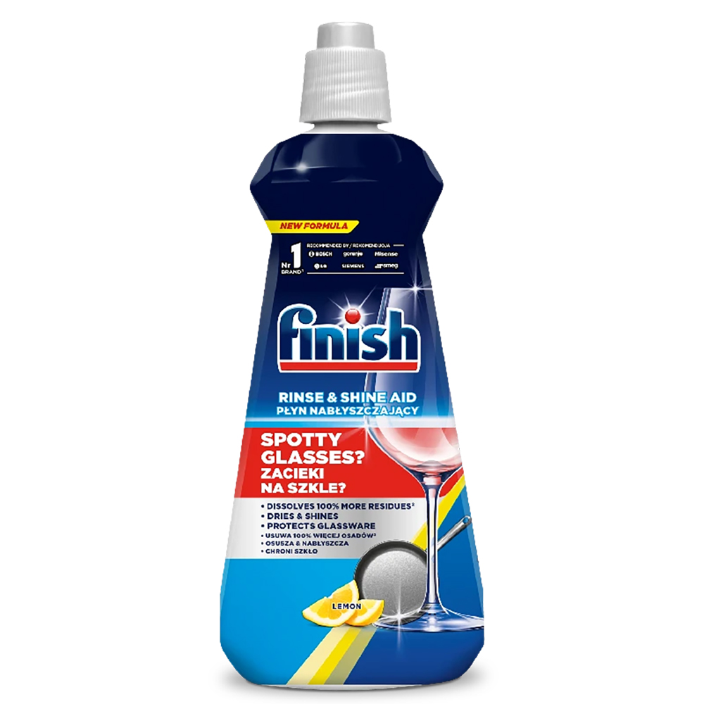Finish płyn nabłyszczający do zmywarek zapewnia szybkie schnięcie naczyń i eliminuje zacieki, pozostawiając szkło i naczynia idealnie błyszczące bez konieczności wycierania.